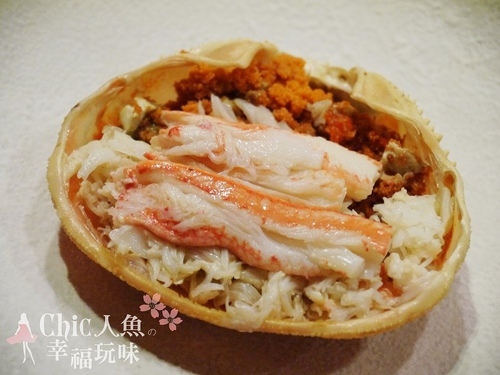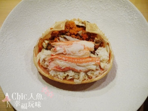 カニ:同樣是極品一皿的螃蟹,醇厚的蟹黃帶來滿口海潮味,爆汁鮮甜的蟹肉在口中盤旋不去~還是兩個字-極品!
