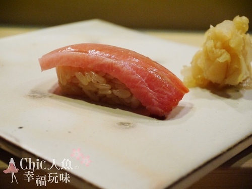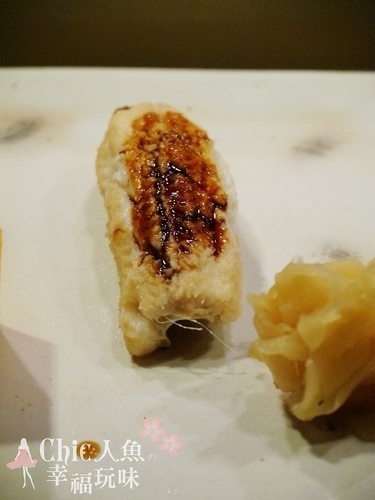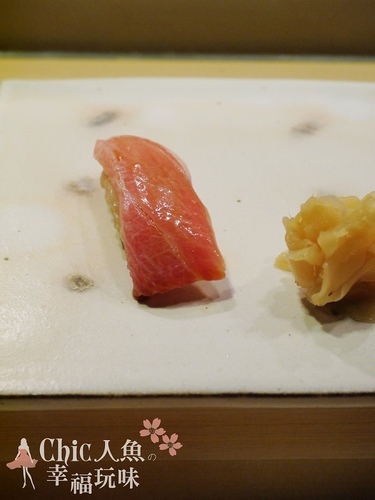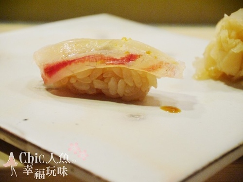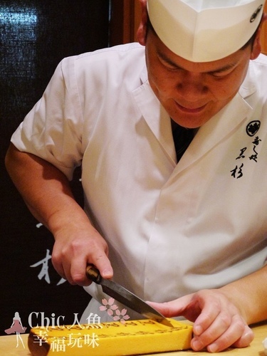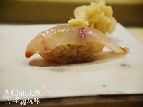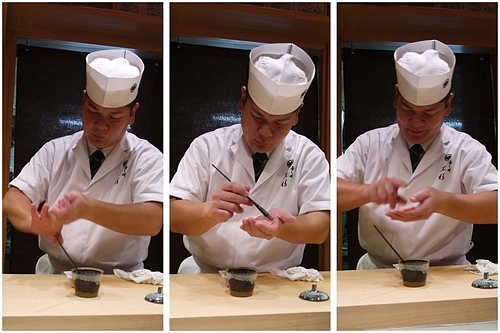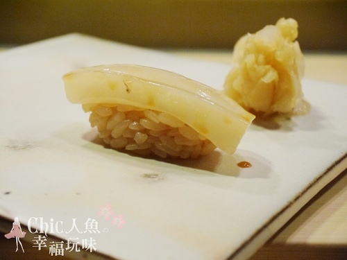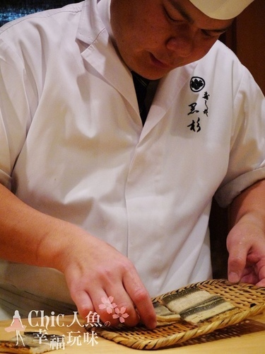 以堅守江戶前(寿司)傳統為中心精神,提供旬(當季)食材的黑杉寿司處,雖然只有10席以內的櫃檯座席,卻沒有大多數標榜極高檔江戶前寿司店那種令人窒息的緊張感(笑~)。相反的,黑杉先生相當擅於在”對的時間”跟客人互動,不僅在上每道菜之初會先跟客人介紹食材以外,對於客人關於料理及魚材的提問,亦都會相當認真的回答,與客人的交流Timing更是拿捏的恰到好處,(我最怕遇到那種全程一直找話題跟客人聊天,口沫橫飛卻不專業的寿司師傅(汗~))。