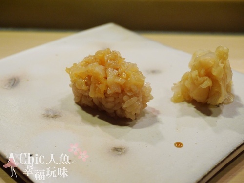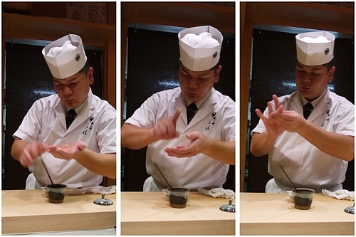 只提供10人以內的カウンター席,只有晚上營業,每晚只服務兩場(兩個時段18:00-19:00 & 20:30~)的寿司店,是個人極為偏愛的店。這種一個時段,只專心服務至多10位客人的職人精神,一向令人有種受尊重的感覺,不僅是店主對食材處理上的尊重(由他們切魚的動作即可感受),亦是對顧客服務至上的一種尊重。尤其造訪當天,我們比預約時間約提早了30分鐘抵達,店家卻非常有禮貌的請我們還是於約定時間再訪。我深深了解,那是因為店主的準備工作尚未達到他許可的極致之境(如魚材的溫度掌控、及餐點準備順序的時間、要烤的、需蒸的…等等),他們寧可冒著對客人失禮之險,也不願讓客人吃到不夠完美的料理。對於大多數日本職人在工作上所表現的一絲不茍及完美堅持,永遠令我萬般佩服。