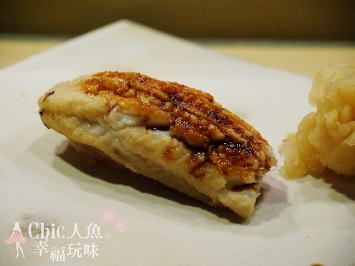 穴子:放在笹葉之上炙燒的穴子(星鰻)才一端出來就滿室生香!