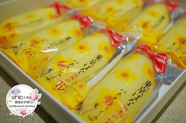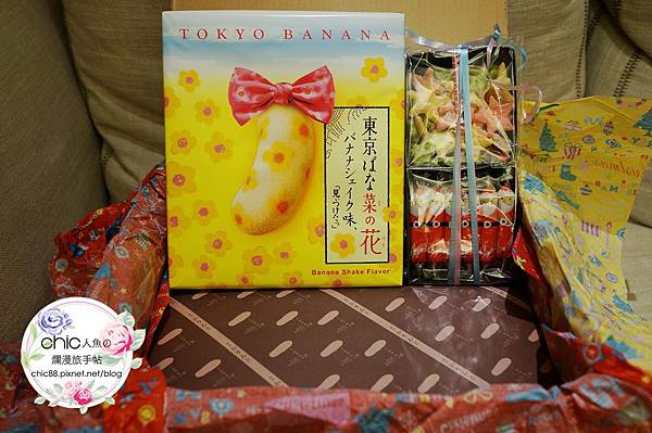 很幸運的,前天剛好收到東京好友メグちゃん的國際包裹聖誕禮物,裡頭就趟著一盒熱騰騰最新發售的「東京ばな菜の花バナナシェイク味」♪♪♪