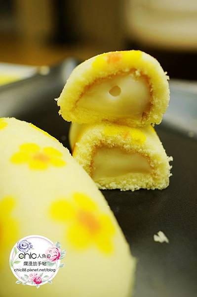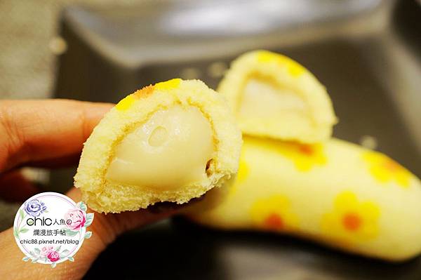 至於內餡的口味呢?則是加了牛奶味的香蕉奶昔卡士達醬!