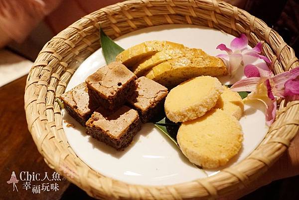 隨甜點附香草茶:為廚房自己栽種的檸檬草、薄荷、迷迭香等香草泡製而成,香氣質樸迷人。