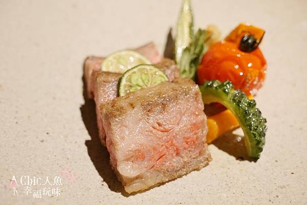 Main Course主要為肉料理:有兩種可供選擇:沖繩本島今歸仁村的黑豬肉&黑毛和牛
