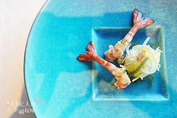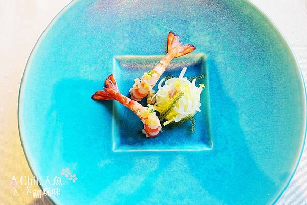 <Premier>前菜:八重山諸島明蝦蛋黃醬.青木瓜佐菠蘿椰汁沖繩蘭姆酒醬汁