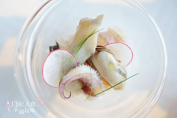非常會"混搭"食材的中洲料理長,無比擅長將明明看起來就是兩個不同個性的食材,卻有如愛神丘比特般將他們配成對,激盪出陣陣花火,玩出一皿皿的珠聯璧合。讓食饕在他的料理中終於得知,原來,他們竟是天生一對!其漸入佳境的料理展演手法,讓前菜完全不搶戲,初嚐以為平淡、其實卻回味無窮,更是為隨後而上的主菜,做了最完美的舖陳。勘稱最強神隊友!中洲料理長與許多西法主廚不同處在於:嚐過不少名廚甚或米其林星級餐廳的料理,總是在前面使盡氣力,將驚豔度推到最高點,反而在主菜端上桌後,很難延續前半場的熱情,成了該餐平淡之作,甚為可惜。