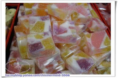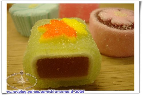 松露類:松露類即壓製成圓形的糖果或羊羹,外表染上一層蜜衣,在關東被稱作為石頭衣。裏面則大多包著細緻宜人的白豆沙餡(除了外層糖衣甜度”很日本以外”,內餡倒是出乎意料地沒有打死賣糖的喔~呵呵)