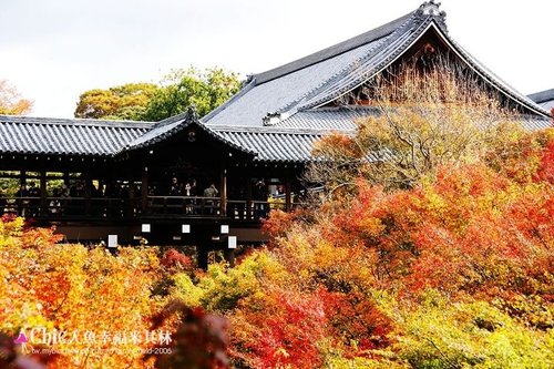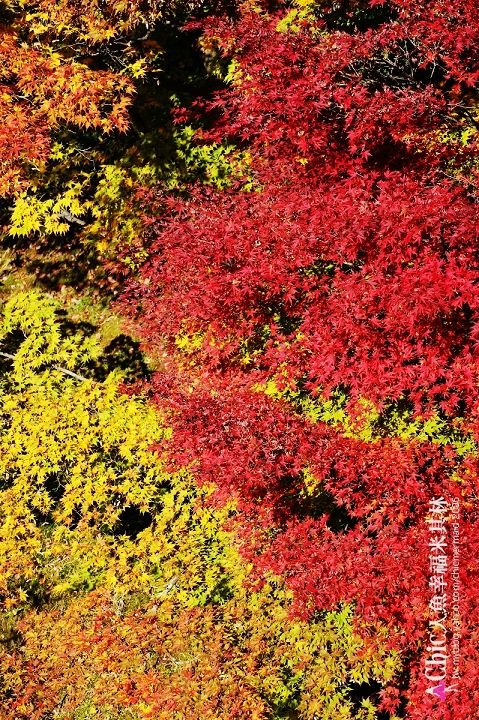 東福寺的楓紅。知名在於~黃。紅。紫。一鼓作氣的